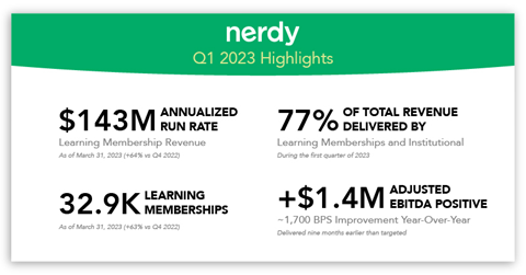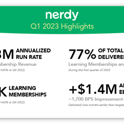 Nerdy Inc. (NYSE: NRDY) today announced financial results for the first quarter ended March 31, 2023.